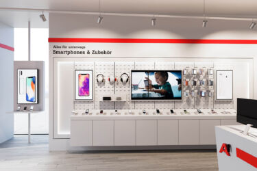 Durch den Einsatz einer neuen multifunktionalen Einrichtung mit integrierter Technologie werden die Produkte und Leistungen von A1 noch besser vermittelt.