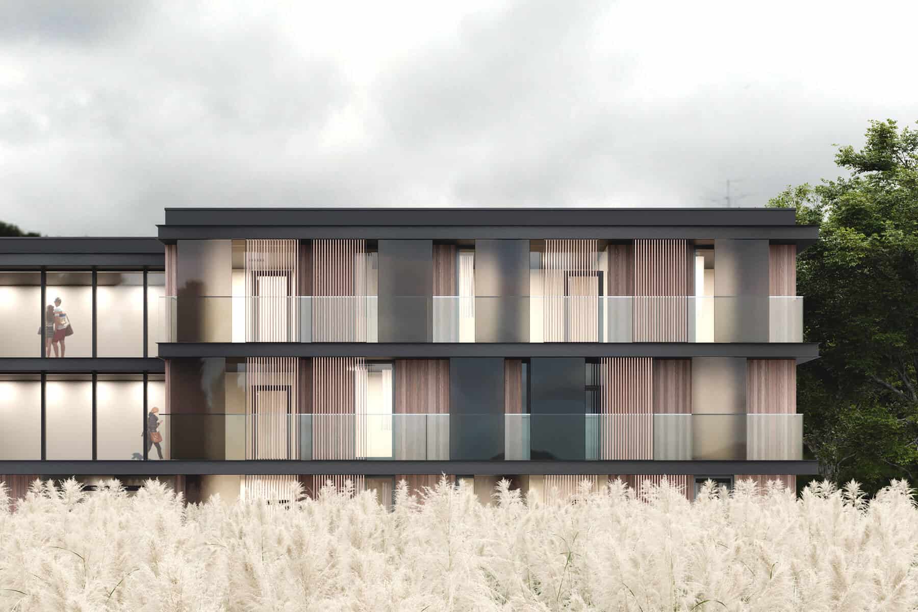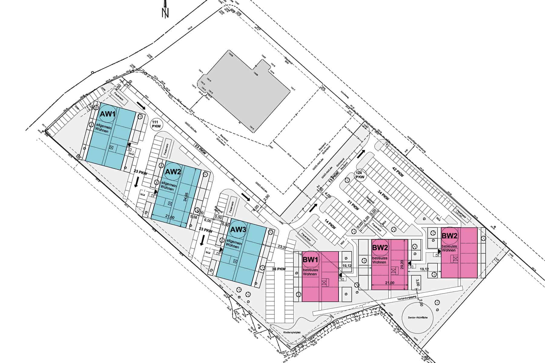 Maßgeblicher Entwurfsansatz ist der Erhalt von kompakten, klar strukturierten Baukörpern mit zentraler Gebäudeerschließung und kurzen Versorgungswegen, um Gangflächen zu minimieren. Die Baukörper sind unter Berücksichtigung des Sonnenbanddiagramms ost – west orientiert. Es werden 63 Wohneinheiten (zwischen 55m² und 80m²) für Wohnungen und weitere 63 Wohneinheiten für betreutes Wohnen (von 45m² bis 70m²) bereit gestellt. Die gesamte Anlage ist als Passivwohnhausanlage konzipiert.