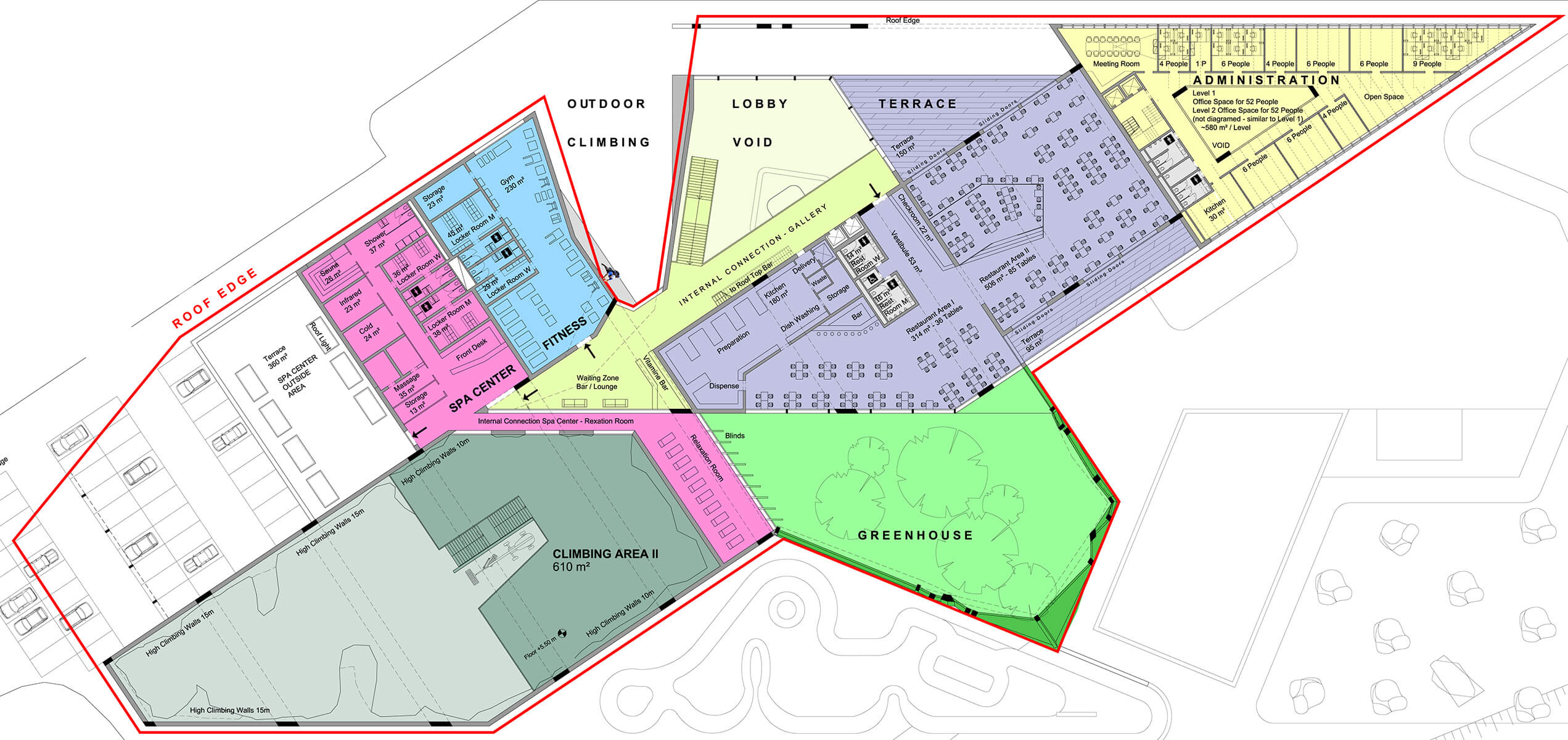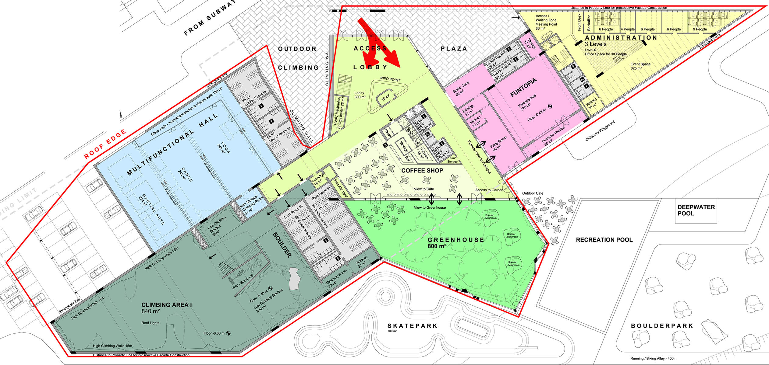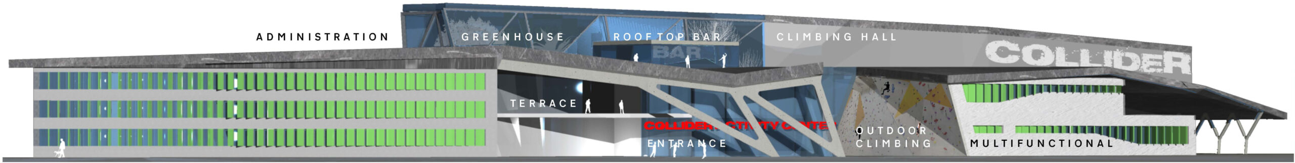 Walltopia Collider Activity Center will be a place that gathers all active people and offers unlimited combinations of sports, rest and networking with different types of climbing walls, fitness center, swimming pool, dance and sports halls