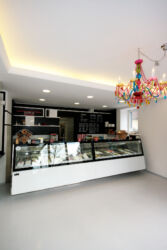 Der bestehende Eissalon „Isola Bella“ in Groß-Enzersdorf wurde adaptiert und umgebaut. Der Kundenbereich vergrößert, die Produktionsräumlichkeiten verlegt. Die reduzierte Inneneinrichtung – gestalterisch beschränkt auf geradlinige Schwarz/Weiß-Akzente – und die Verwendung der auf optimale Funktionalität ausgerichteten italienischen Eisvitrinen und Produktionsmaschinen bilden die Kulisse eines beschwingten und freundlichen Alltags des Eissalongeschehens. Die Außenwerbung ist als Weiterführung der Corporate Identity vom Verkaufsraum in die Fassadenflächen im Erdgeschossbereich gezogen und als Wandpaneelkonstruktion mit integrierten, hinterleuchteten Leuchtkastenflächen ausgebildet.
