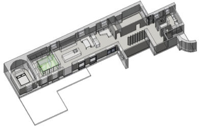 Um den Charakter des großen Raumes zu erhalten, wurden keine neuen Wände errichtet.