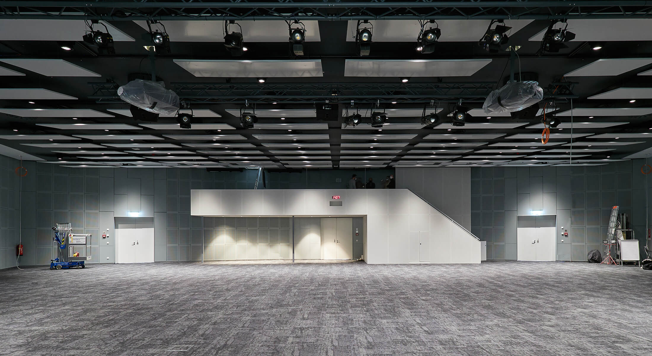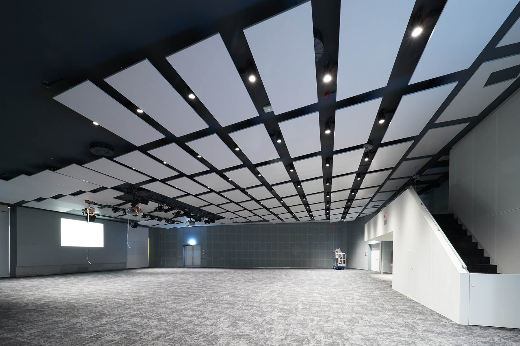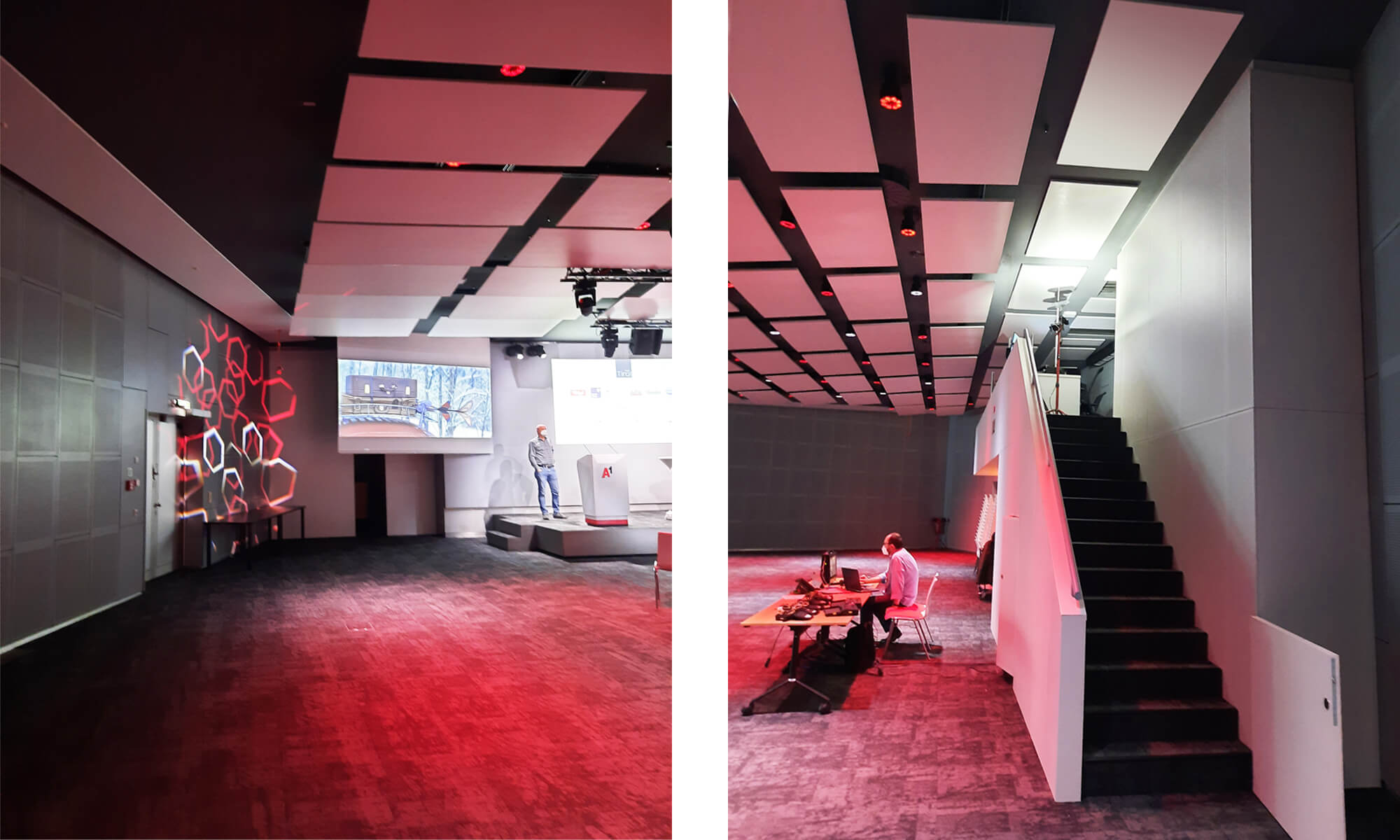 Wesentliche Projektvorgaben waren die Erweiterung des Technikbalkons unter Berücksichtigung gestiegener Nutzervorgaben und Einsatz modernster Medientechnik. Den erhöhten Anforderungen an Raumakustik wurde durch den Einsatz von Hochleistungsschallabsorbern aus 100% PET-Recyclingmaterial im Deckenbereich genüge getan.