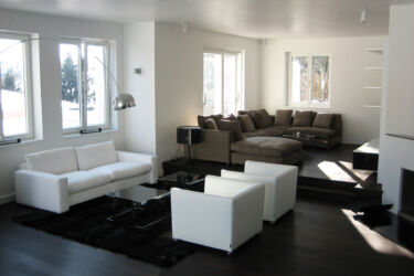 Der gesamte Innenbereich des Gebäudes wurde komplett redesignt, die Außenansicht und die Garagenanlage erneuert. Das Gebäude wurde entkernt, nur das Dach und die Außenwände blieben unberührt. Die beiden Wohngeschosse wurden soweit wie möglich geöffnet.