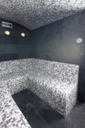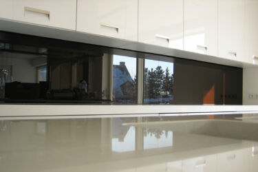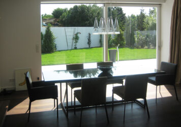 So entstand im Erdgeschoss ein 90m² großer Wohn-, Ess- und Kochbereich. Notwendige Abtrennungen wurden durch Glasschiebetüren erreicht um den Lichteinfall nicht zu behindern und die offene Atmosphäre zu erhalten. Im Zuge der Sanierung wurden auch gleich alte Bausünden behoben. Viel Licht, gerade Linien und weiß als neutraler Hintergrund prägen den Wohnbereich, während im Keller ein hauptsächlich in schwarz gehaltener Wellnessbereich sowie eine Einliegerwohnung als Minimalwohneinheit geschaffen wurde.