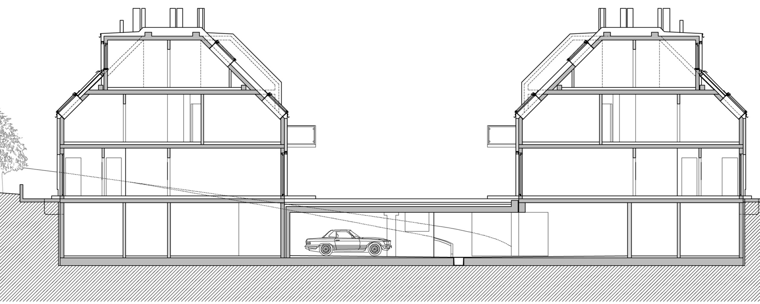 Wohnbau im Süden von Wien. 2 Baukörper mit insgesamt 14 Wohneinheiten und Tiefgarage. Planung für einen Bauträger