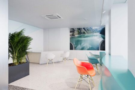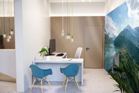 Offene Arbeitsbereiche und diskrete Besprechungszonen fördern effiziente Kommunikation und Flexibilität, während eine helle und freundliche Gestaltung eine angenehme Atmosphäre für alle Besucherinnen schafft. Hochwertige Materialien, klare Linien und ein harmonisches Beleuchtungskonzept sorgen für eine zeitgemäße und nachhaltige Wirkung.